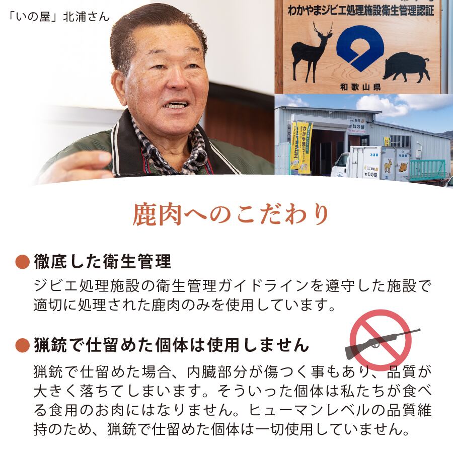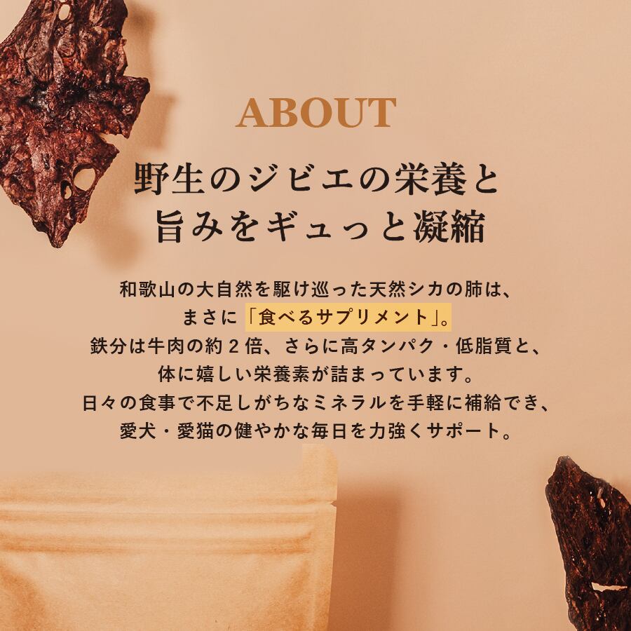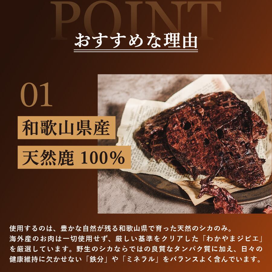 厳選した和歌山県産日本鹿肉の肺部位のみを使用した贅沢な無添加ジャーキー。