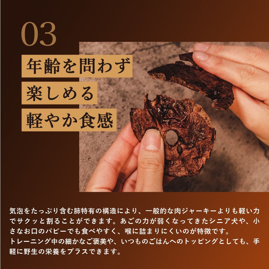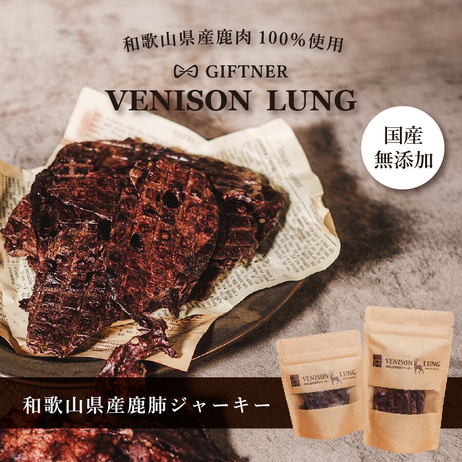 厳選した和歌山県産日本鹿肉の肺部位のみを使用した贅沢な無添加ジャーキー。