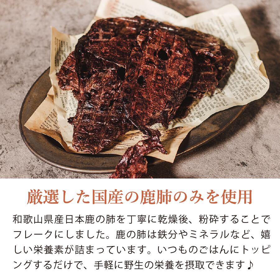 厳選した和歌山県産日本鹿肉の肺部位のみを使用した贅沢な無添加ふりかけ。